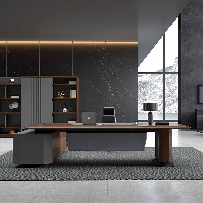 1、采用進口天然美洲胡桃木皮/水性環(huán)保漆 2、臺面配有多功能電源(藍牙音箱、插座),方便用電和走線 3、副柜配配有LED氛圍燈